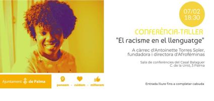 L'àrea de Justícia Social, Feminisme i LGTBI de l'Ajuntament de Palma ha organitzat per aquest divendres 7 de febrer la conferència-taller 'El racisme en el llenguatge' que es farà a les 18.30 h al Casal Balaguer.