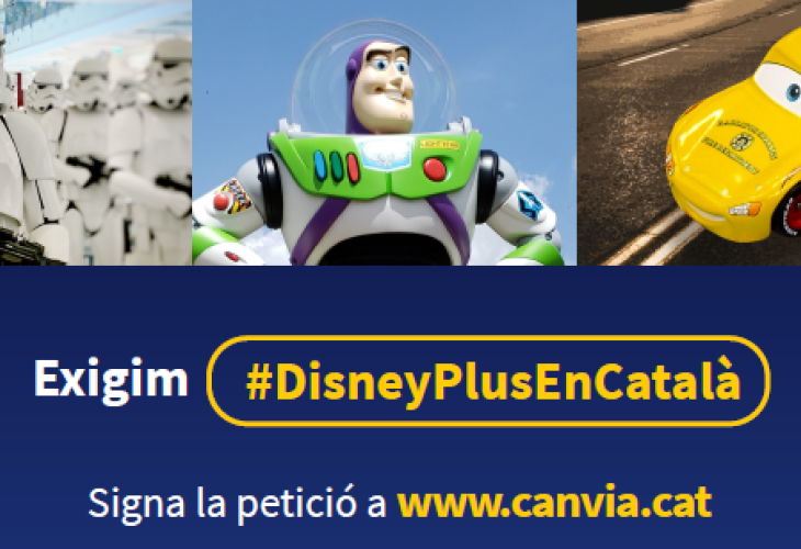 La setmana passada es va estrenar a l'Estat espanyol Disney+, la nova plataforma de vídeo per internet amb continguts de la mateixa Disney i d'altres productores filials com Pixar. Tal com ja va denunciar la Plataforma per la Llengua, la sorpresa va ser que Disney no incorporava les versions en català que ja existeixen de títols que ofereix al seu catàleg actual com Dumbo, Frozen: El regne del gel, Toy Story 4, Cars o la majoria de les pel·lícules de la saga Star Wars (totes excepte l'episodi I), entre molts altres. L'ONG del català va qualificar aquesta situació com una clara voluntat de rebuig de Disney cap al català.