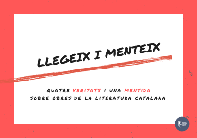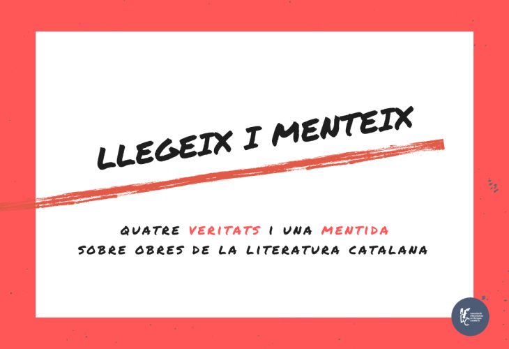 Aquest dimarts comença 'Llegeix i menteix': quatre veritats i una mentida sobre obres de la literatura catalana. Inspirada en la cadena de Twitter mitjançant la qual s'expliquen cinc coses sobre un mateix incloent-hi una falsa, l'AELC ha preparat diverses fitxes seguint el mateix esquema amb títols rellevants de les nostres lletres. Durant tota la setmana, es penjaran a les xarxes i al web fitxes amb quatre veritats i una mentida de cada llibre. Es convida tothom a trobar les dades inventades i a comentar-ho a les xarxes.