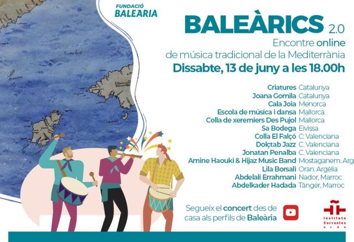 La Fundació Baleària continua organitzant esdeveniments en línia amb l'objectiu de traçar xarxes culturals entre els diferents territoris en què opera. I dissabte 13 de juny tendrà lloc la primera Trobada de Música Tradicional Mediterrània, que s'emmarca en el programa Baleàrics 2.0 i que s'emetrà al canal de YouTube de Baleària a partir de les 18.00 hores. El cartell està compost per músics de les Balears, Catalunya, el País Valencià, el Marroc i Algèria.