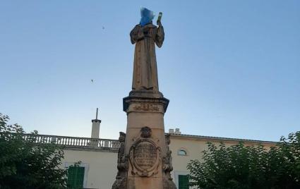 Col·loquen una bossa de fems al cap de l'estàtua de Juníper Serra a Petra