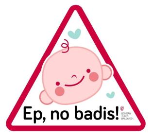 La Direcció General de Política Lingüística ha editat 23.000 adhesius amb el lema 'Ep, no badis!' --'Eh, no et despistis!'-- per a advertir que, dins d'un automòbil, viatja un nadó.