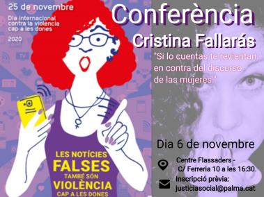 En el marc del Dia Internacional contra la Violència cap a les Dones, aquest divendres, 6 de novembre, la periodista Cristina Fallarás oferirà una conferència a Palma.