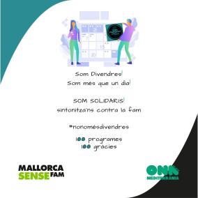 El programa Som Divendres d'Ona Mediterrània complirà, el proper 18 de desembre, els 100 programes i ho celebra amb una acció solidària amb els més desafavorit 'Mallorca sense fam'.