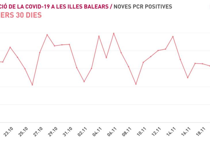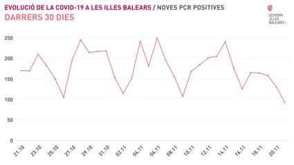 Segons les dades de la Conselleria de Salut, s'han detectat 92 proves de diagnòstic positives en les últimes 24 hores, 39 menys que aquest divendres, i la taxa de positivitat se situa en el 2,53%. Des de l'inici de la pandèmia s'han realitzat a les Illes 585.409 proves, de les quals 3.636 s'han dut a terme en l'últim dia.