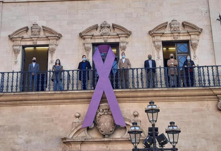 L'Ajuntament de Palma llueix al seu balcó un llaç pel Dia Internacional de l'Eliminació de la Violència masclista, que se celebra aquest dimecres.