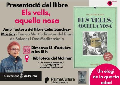 Conversa sobre el llibre 'Els vells, aquella nosa', de Cèlia Sánchez-Mústich, dimecres 18 d'octubre, a les 18.00 hores, a la Biblioteca del Molinar