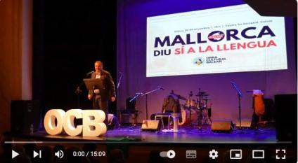 Quan encara ressonen els ecos del gest de dignitat col·lectiva en que va esdevenir l'acte 'Sí a la llengua' organitzat per l'OCB a Calvià, s'ha fet públic el vídeo de la intervenció d'Antoni Llabrés, vocal de la junta de l'Obra Cultural Balear, a l'acte al teatre Sa Societat de Calvià.