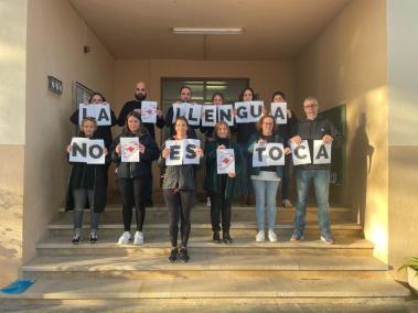 El CEIP Son Juny de Sant Joan s'adhereix a la campanya 'La llengua no es toca'. El professorat del centre escolar s'ha reunit a l'entrada de l'edifici, tots vestits de negre i amb papers han format el lema de la iniciativa.