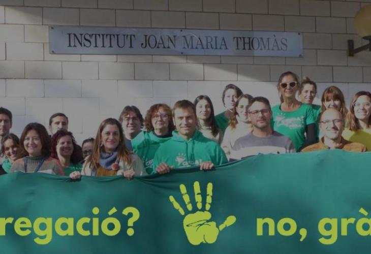 Entre aquests centres trobam l'IES Joan Maria Thomàs, que també ha publicat una fotografia amb el lema 'Segregació? No, gràcies!' a les portes del centre i amb els professors vestits amb les camisetes verdes en defensa de l'educació.