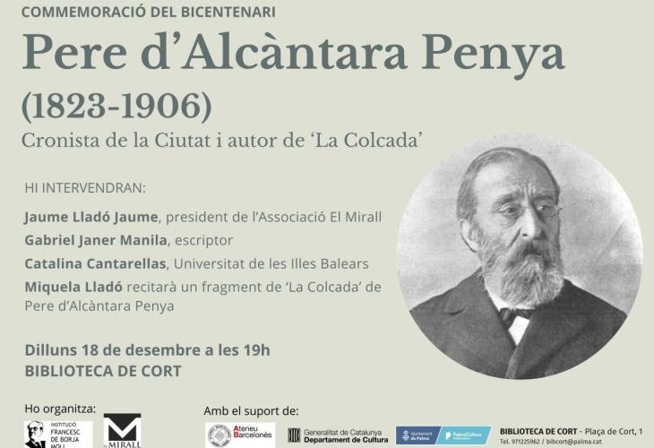 La Institució Francesc de Borja Moll i la revista cultural 'El Mirall', que li dedicarà un monogràfic, han organitzat dos homenatges, dilluns 18 a les 19 hores a la biblioteca de Cort, a Palma, i dimecres 20 a la mateixa hora, a la Casa de Cultura de Felanitx, per a commemorar el bicentenari de Pere d'Alcàntara Penya (Palma, 1823-1906), poeta, autor teatral, periodista, narrador, misser, professor, astrònom, enginyer, urbanista, mestre d'obres i fortificacions, cartògraf, cronista de la ciutat de Palma, autor de 'La Colcada', dibuixant, pintor, gastrònom, autor d'una 'guia' de l'arxipèlag i col·laborador des del primer moment del 'Diccionari català-valencià-balear' d'Antoni Maria Alcover. Hi col·laboren els ajuntaments de Palma i Felanitx, el departament de Cultura de la Generalitat de Catalunya i l'Ateneu Barcelonès, a on també s'hi ha realitzat un acte de commemoració.