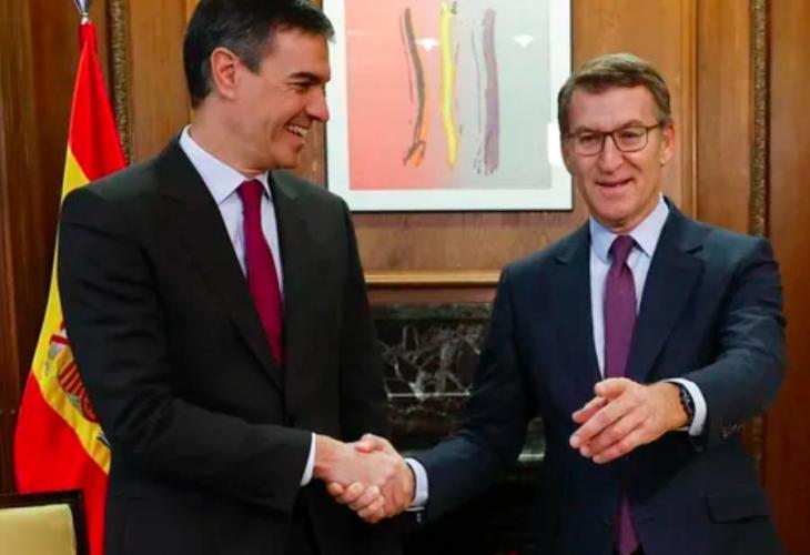 El president del govern espanyol, Pedro Sánchez, i el líder del Partit Popular espanyol, Alberto Núñez Feijóo, s'han reunit durant gairebé dues hores al Congrés dels Diputats, aquest divendres, en una trobada que ha costat molt de pactar.