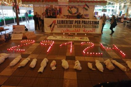 La plataforma Mallorca per Palestina ha realitzat una 'performance' amb concentració de protesta aquest dijous a la plaça Major de Palma per a censurar «el genocidi a Gaza per part de l'exèrcit ocupant d'Israel».