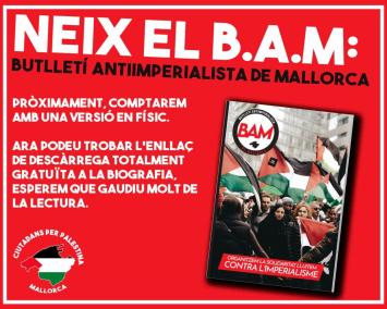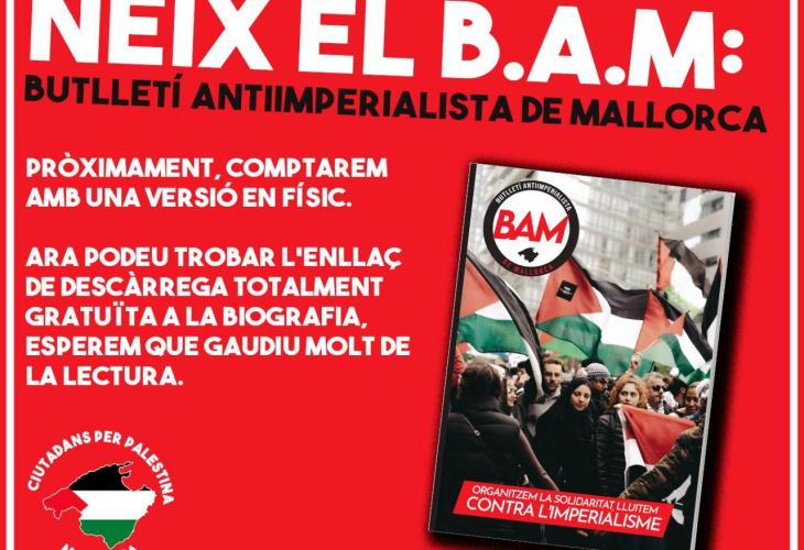 Ciutadans per Palestina ha donat el sus a una publicació combativa de caràcter antiimperialista. Així, tal com han anunciat aquest divendres a les xarxes socials, ja han editat el primer número de B.A.M: Butlletí Antiimperialista de Mallorca.