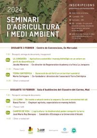 Aquest dissabte comença la primera jornada del Seminari d’Agricultura i Medi Ambient del GOB Menorca. Serà el 3 de febrer, al Centre de Convencions es Mercadal, i podrem escoltar les ponències 'Agricultura sostenible i maneig hidrològic en un entorn en perill de desertificació', de Jacobo Monereo; i 'Generació de sòl fèrtil en un territori semiàrid', de Marta Cortegano.