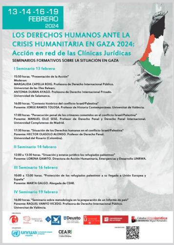La Clínica Jurídica de la Universitat de les Illes Balears (UIB) organitza, juntament amb altres sis clíniques jurídiques d’universitats d’arreu de l’Estat, l’acció formativa 'Els drets humans davant la crisi humanitària a Gaza'.