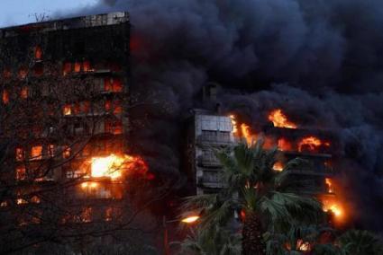 Els bombers han trobat restes de quatre víctimes mortals i cerquen 19 persones desaparegudes a l'edifici de catorze plantes calcinat per un incendi al barri del Campanar de València.