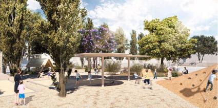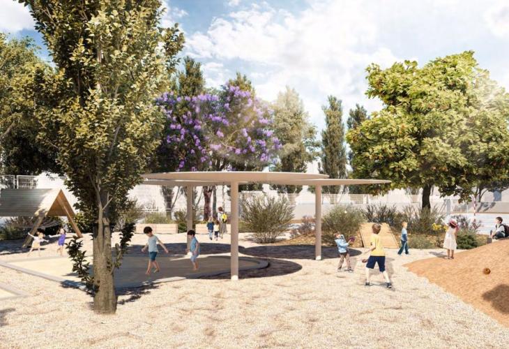 El projecte inclou la creació d'ombres, el tractament de paviments, la plantació d'arbratge i vegetació i la col·locació de zones de joc i moviment.