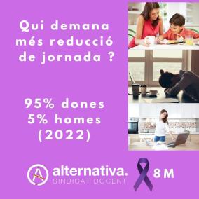 En aquest 8 de març, Dia Internacional de la Dona, el sindicat docent Alternativa s'ha sumat «a la reivindicació i a l’objectiu primordial de dies com aquests: posar de relleu el paper de la dona en el món laboral. En el món educatiu, el paper de la dona és especialment rellevant essent la part majoritària de la plantilla».