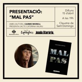'Mal Pas' és la primera novel·la de l'autora i guionista Carme Morell, i publicada per Ínsula Literària. Ha estat presentada a Can Domènec, Alcúdia, el 20 de febrer, a càrrec de la delegació de l'Obra Cultural Balear d'Alcúdia, i de la mà de l'actor Lluís Colom. I a Can Alcover, Palma, el passat 10 d'abril; presentació organitzada per l'Obra Cultural Balear I que va comptar amb l'escriptor I historiador Quico Maura com amfitrió.