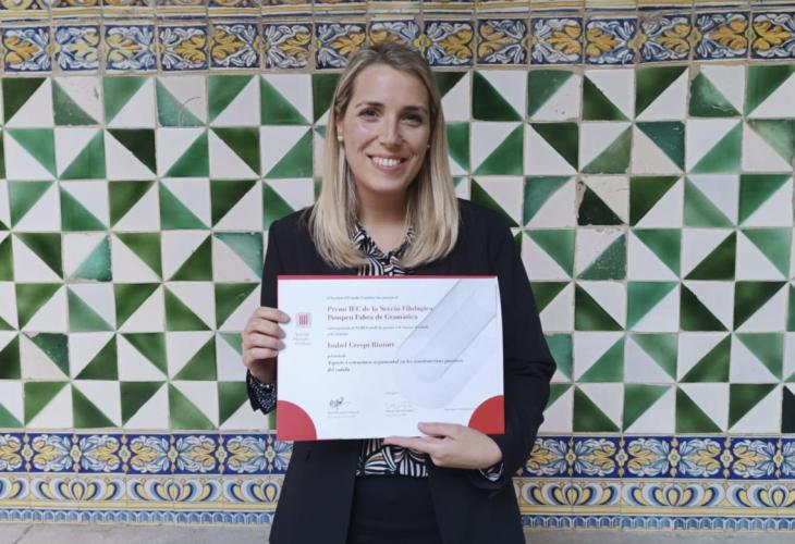 La doctora Isabel Crespí Riutort, professora ajudant doctora al Departament de Filologia Catalana i Lingüística General de la Universitat de les Illes Balears (UIB), ha estat guardonada amb el Premi IEC de la Secció Filològica Pompeu Fabra de Gramàtica pel treball 'Aspecte i estructura argumental en les construccions passives del català'.