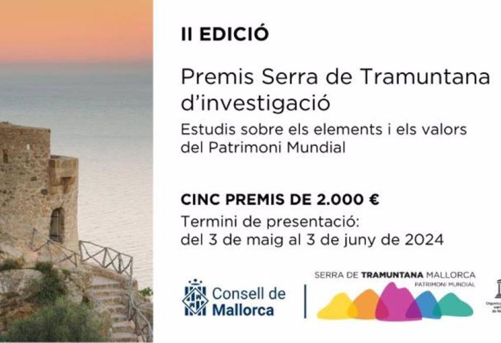 El Consell de Mallorca ha convocat la segona edició dels Premis Serra de Tramuntana d'Investigació, on es reconeixeran els cinc millors estudis sobre el patrimoni mundial amb una dotació de 2.000 euros per a cadascun d'ells.