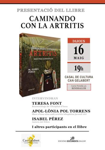 Durant la setmana que entram hi haurà dues presentacions del llibre Caminando con la artritis de M. Isabel Pérez (Documenta Balear, 2024). El llibre recull històries de persones amb artritis reumatoide, espondilitis, artritis idiopàtica juvenil (AIJ), artritis psoriàsica, etc.