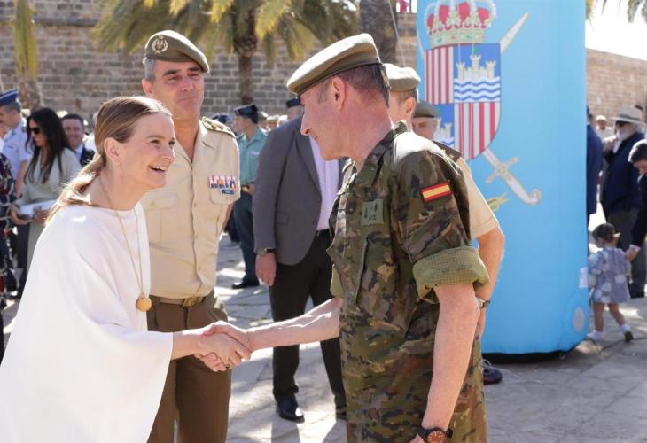 La presidenta del Govern, Marga Prohens, ha agraït aquest dissabte a l'Exèrcit espanyol el seu «compromís i vocació de servei públic» en la vigilància «de la seguretat i benestar de tots els ciutadans de les Balears», amb motiu de la celebració del Dia de les Forces Armades, que a Palma s'ha dut a terme en el Parc de la Mar. Tot un acte d'enaltiment del militarisme espanyol.