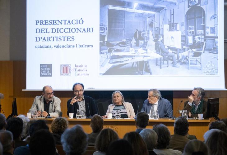 El diccionari s'ha presentat en un acte institucional a la seu de l’IEC presidit per la presidenta, Teresa Cabré, i el director del MNAC, Pepe Serra, acompanyats dels tres directors del projecte Francesc Fontbona, Eduard Vallès i Bonaventura Bassegoda, tots tres experts reconeguts i membres de l’IEC. També hi han assistit alguns autors i autores de les entrades del diccionari i persones professionals del sector, entre els quals es compten membres de l’IEC i conservadors del MNAC.