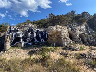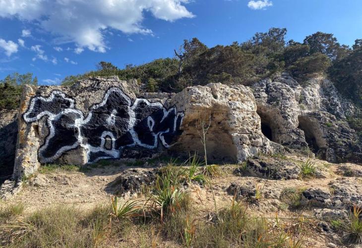 La Policia Local de Felanitx cerca identificar l'autor o autors d'una pintada vandàlica de grans dimensions que ha aparegut a la Cova des Moro, als voltants de Cala sa Nau.
