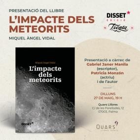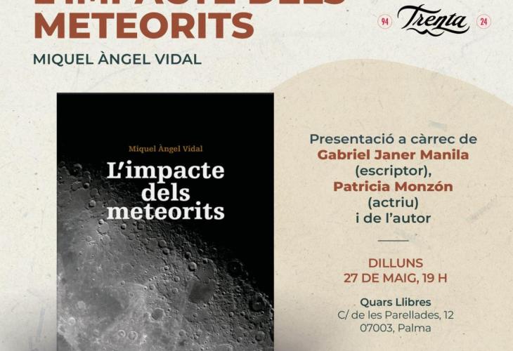 Aquest dilluns, 27 de maig, a les 19.00 hores, a Quars Llibres (carrer de les Parellades, 12, Palma), es farà la presentació del llibre que recull un total de seixanta-tres nous relats de Miquel Àngel Vidal, titulat 'L’impacte dels meteorits'.