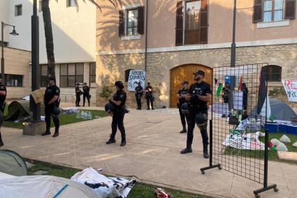 Per la seva banda, des de l'Acampada per Palestina han remarcat que el rector ha demostrat que «prefereix la censura al diàleg» enviant la Policia espanyola. «Han vingut amb sis o set furgons i entre 15 i 20 policies i ens han tret fora de Son Lladó, un per un. Han identificat tothom. En principi no hi ha cap lesionat però sí que hi ha una persona a la qual li han fet mal als canells», han explicat.