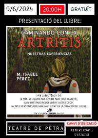Actualitzam que el lloc de presentació del llibre 'Caminando con la artritis' (Documenta Balear 2024) de M. Isabel Pérez serà, finalment, al Centre d’Art s’Estació de Petra i no al teatre com s’havia anunciat al cartell anterior. El cartell que acompanya aquesta notícia és la darrera versió que ens han fet arribar.