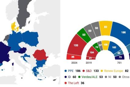 El Partit Popular Europeu (PPE) ha guanyat les eleccions al Parlament Europeu (PE) i es manté com la primera força de l'Eurocambra, per davant de Socialistes i Demòcrates (S&D), que es manté com a segona força malgrat perdre escons; dels liberals europeus (Renew), tercera força, i dels Verds, que pateixen una gran retallada d'escons. L'extrema dreta augmenta la seva presència, amb victòries contundents a Àustria i l'Estat francès i un segon lloc a Alemanya i als Països Baixos. El principal partit d'ultradreta de Portugal, Chega, també entraria per primera vegada en el Parlament Europeu.