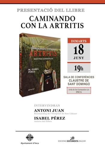 Aquest dimarts, dia 18 de juny, a les 19 h, es presentarà de bell nou el llibre Caminando con la artritis de M. Isabel Pérez a la sala de conferències del Claustre de Sant Domingo d’Inca, ubicat a l’av. de les Germanies s/n.