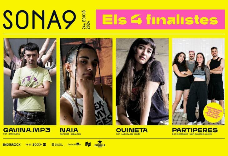 Els 4 finalistes de la 24a edició del Sona9 2024 són el grup Gavina.mp3 (pop · Barcelona), Naia (pop – r'n'b · Badalona), Ouineta (urban pop · La Roca del Vallès) i Partiperes (tecno pop · Sant Cugat del Vallès), elegits després dels concerts preliminars realitzats a Barcelona, Tarragona, Lleida, Manacor, Andorra i Salt i les semifinals als festivals Acústica de Figueres, Festes de Santa Tecla de Tarragona, Mercat de Música Viva de Vic i BAM de Barcelona.