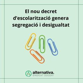 El Sindicat Alternativa ha expressat la seva oposició a les noves mesures que recull el Decret d'escolarització que entrarà en vigor el pròxim curs, especialment pel que fa a la creació de tres zones escolars a Palma.
