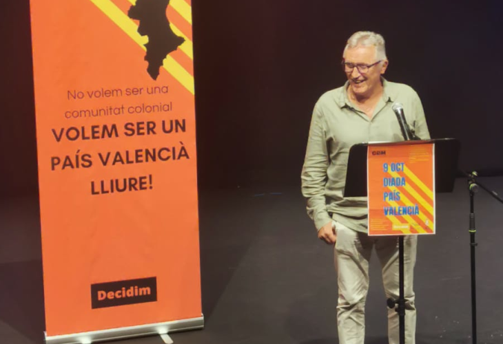 Zahia Guidoum, presidenta de la plataforma Decidim, ha dit en començar la intervenció que l'acte pretén denunciar que «el País Valencià era una colònia interna de l’estat espanyol».
