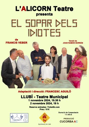 L’Alicorn Teatre presenta El sopar dels idiotes de Francis Veber al teatre municipal de Llubí. L’actuació estava programada per fer-se dia 2 de novembre a les 19:00 h, però en només un parell de dies quasi s’han esgotat la totalitat de les entrades, encara en queden una vintena.