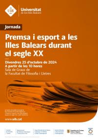 El proper divendres, 25 d’octubre de 2024, a la Sala de Graus de l’edifici Ramon Llull (Campus UIB), es faran les jornades 'Premsa i esport a les Illes Balears durant el segle XX'.