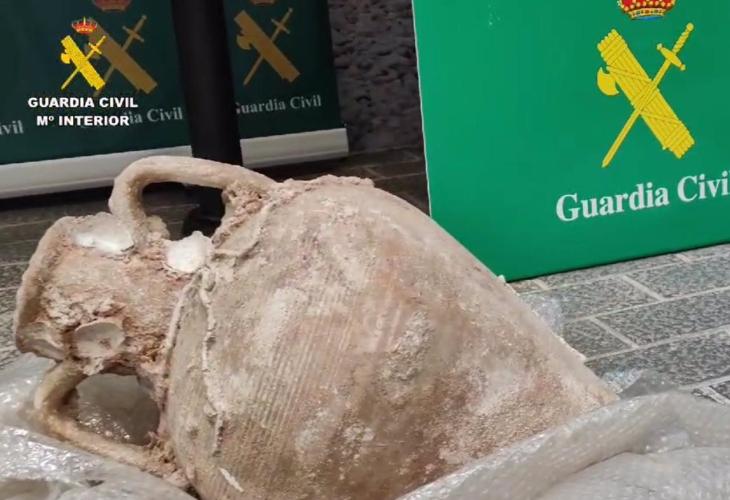 Segons han informat en una nota de premsa, arran d'aquesta troballa, el Servei de Protecció de la Natura (Seprona) dins de les competències que se li atribueixen en aquest tipus de delictes, va iniciar una investigació que s'ha saldat amb la recuperació de més 1.000 peces històriques, entre les quals hi ha nombroses monedes, àmfores, ungüentaris, llums, atuells, joies, figures i espases, entre d'altres.