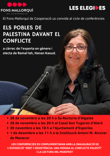 La visita de Hanan Kaoud a Mallorca coincidirà amb la setmana del 25 de novembre, Dia Internacional per l’erradicació de la Violència contra les Dones, i el 29 de novembre, Dia Internacional de Solidaritat amb el Poble Palestí. Durant la seva estada, realitzarà una sèrie de ponències en diversos municipis de l'illa: Algaida, Alaró, Esporles i Manacor. Sota el títol 'Els pobles de Palestina davant el conflicte', Hanan compartirà amb el públic assistent com, des de la política local, es pot afrontar situacions d’emergència humanitària. També parlarà del paper de les dones electes com a motors de canvi, especialment en contextos de crisi.
