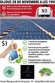 Vic, el ponent, forma part de la plataforma 'Renovables sí, però així no' que organitza l’acte, juntament amb Amics de la Vall de Coanegra i l'Espai Passatemps, on es durà a terme la xerrada (carrer Marquès de la Fontsanta, 14, Santa Maria del Camí).