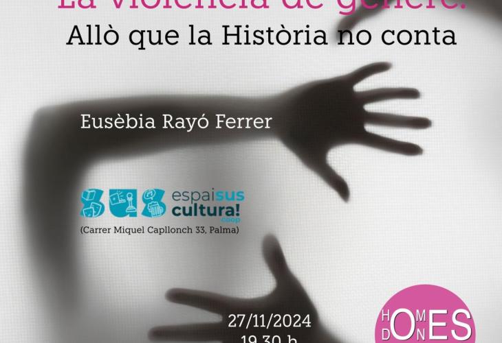 Eusèbia Rayó Ferrer, professora, escriptora i investigadora, especialitzada en temes sobre la violència contra les dones, realitzarà una xerrada a l'Espai Suscultura de Palma (Carrer Miquel Capllonch, 33) el dimecres 27 de novembre a les 19.30 hores amb el títol 'La violència de gènere. Allò que la història no conta'. La ponència l'ha organitzada l'associació Homes per la Igualtat, amb l'objectiu de donar a conèixer als ciutadans i ciutadanes de la nostra illa la violència de gènere que ha tengut lloc des de l'edat mitjana fins a la primera meitat del segle XX. Es farà una menció especial a la violència estructural, o sigui, aquella que no era vista com a violència sinó com a comportaments normals, emparats per lleis, usos i costums que ara semblen impensables i que en molts de casos romania oculta. Aquesta violència estructural és important que es conegui, atès que hi ha una revifada de violència masclista que, a més a més de no reconèixer la situació, pretén tornar a fer-la invisible, amb el nom de violència intrafamiliar.