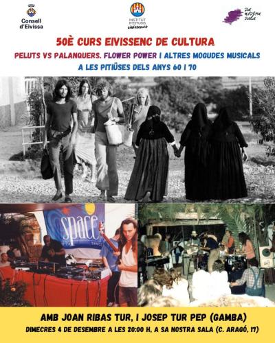 La conferència d'aquesta setmana vinent rep el nom de ‘Peluts vs palanquers. Flower power i altres mogudes musicals a les Pitiüses dels anys 60 i 70’, i serà a càrrec de Joan Ribas Tur i Josep Tur Pep, ’Gamba’. Presentarà l’acte Joana Tur, vocal de l’IEE.
