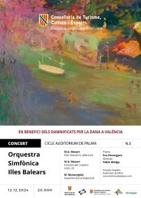 L’Orquestra Simfònica Illes Balears (OSIB) oferirà el pròxim 12 de desembre el tercer concert de temporada d’abonament, a l’Auditorium de Palma, a les 20 hores, dirigit pel mestre titular Pablo Mielgo. Serà un concert solidari ja que es destinarà tota la recaptació de la taquilla a benefici dels afectats per la DANA al País Valencià, a la Federació de Societats Musicals. Amb aquesta iniciativa solidària, l’OSIB tracta d'ajudar als damnificats pel terrible temporal. Les entrades ja estan a la venda i es poden comprar a través de la web de la Simfònica o les taquilles de l’Auditorium de Palma.