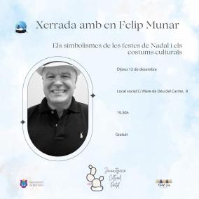 Dijous 12 de desembre Felip Munar farà una xerrada gratuïta sobre ‘Els simbolismes de les festes de Nadal i els costums culturals’ al local social de Pòrtol (c/Mare de Déu del Carme, 8) a les 19:30 h.