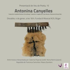 Antonina Canyelles serà la primera dona de la col·lecció Veu de Poeta, que edita la Fundació Musical ACA. Es presenta el proper dissabte, 4 de gener, a les 18 hores, a les instal·lacions de la Fundació, a Búger. L’acte anirà acompanyat de música a càrrec de Caterina Payeras (violí) i Núria Ramis (piano); i la rapsòdia de Francisca Camuñas i Noary Quintero.