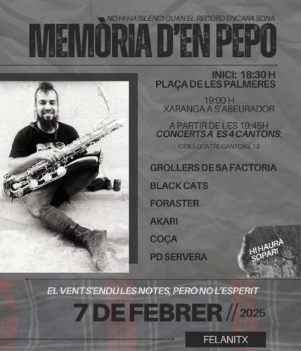 El febrer de l'any passat va morir el jove músic i activista social felanitxer Pere Joan Monserrat, conegut com a 'Pepo', a 32 anys. Ara, un any després, s'organitza una jornada en memòria de 'Pepo' amb el lema 'No hi ha silenci quan el record encara sona'.