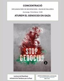 Amnistia Internacional ha convocat una concentració, aquest diumenge, a Palma, per a exigir la fi del genocidi a Gaza.